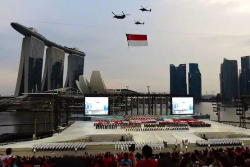 而今天,恰逢新加坡的國慶日,在政府大廈草場舉行了隆重的慶典期活動。海、陸、空三軍也整齊亮相!