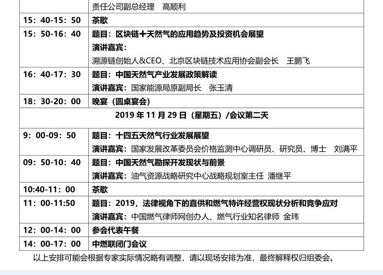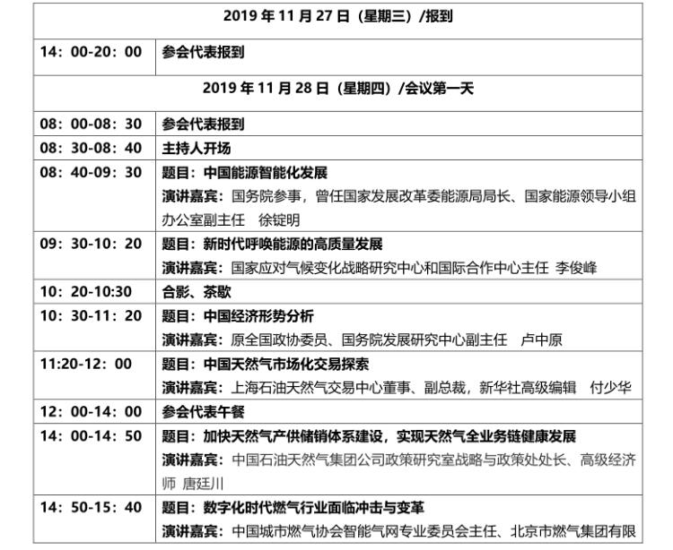 2019年第七屆中國天然氣市場化&智能化 發展大會會議議程