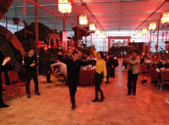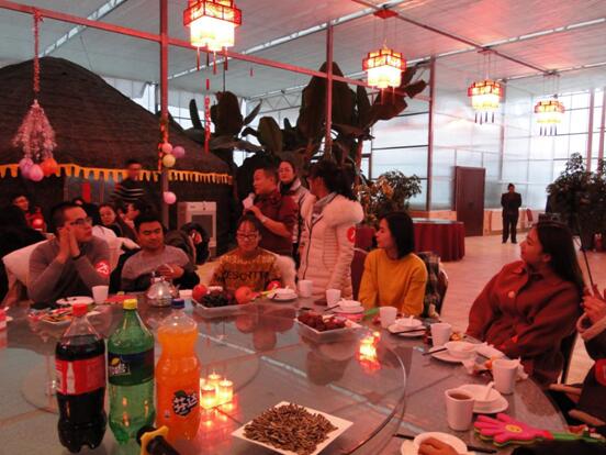 在阜康德天利生態農莊里,該公司提前對會場進行精心布置,設置幕布背景墻、四周環繞繽紛五彩氣球,營造浪漫溫馨的氣氛;甜點、水果、瓜子、巧克力等擺放錯落有致,色味俱佳,增進大家互動交流體驗。