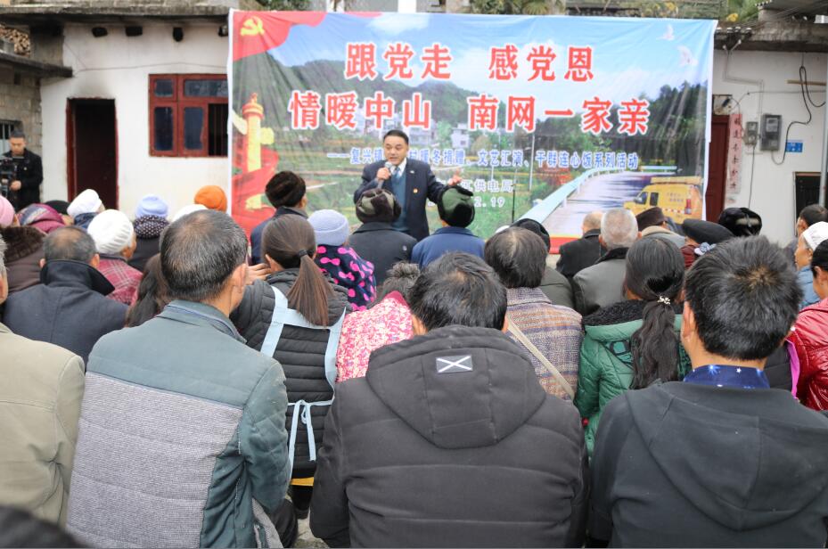 當(dāng)日13時,感恩教育在中山村村民王南舉家院壩里拉開序幕,該局黨委書記田景江說,中山村在黨和政府的關(guān)心、關(guān)懷下,供電局與全村256戶1120人結(jié)成一家親,結(jié)對謀發(fā)展,使中山村的人居環(huán)境、產(chǎn)業(yè)發(fā)展、基礎(chǔ)設(shè)施建設(shè)、老百姓生活水平等發(fā)生了翻天覆地的變化。該局局長代勇大力宣傳黨的政策、惠民政策和脫貧攻堅政策,他講述本人的成長故事后,將幫扶中山村的結(jié)對幫扶干部毛世文、局扶貧辦主任陳啟忠、駐村幫扶干部張玉洪也邀請上講臺,講述這三位幫扶代表在中山村幫扶所發(fā)生的感人故事,并要求中山村老百姓要心懷一顆感恩之心,堅定不移聚力決戰(zhàn)決勝脫貧攻堅的信心和決心。中山村村民譚進(jìn)強(qiáng)對德江供電局一直以來的關(guān)心關(guān)愛表示了衷心的感謝,對供電局幫扶前和幫扶后發(fā)生翻天覆地的變化進(jìn)行了對比,尤其對中山村的水、電、路、訊等基礎(chǔ)設(shè)施的變化給予了充分肯定和高度評價。