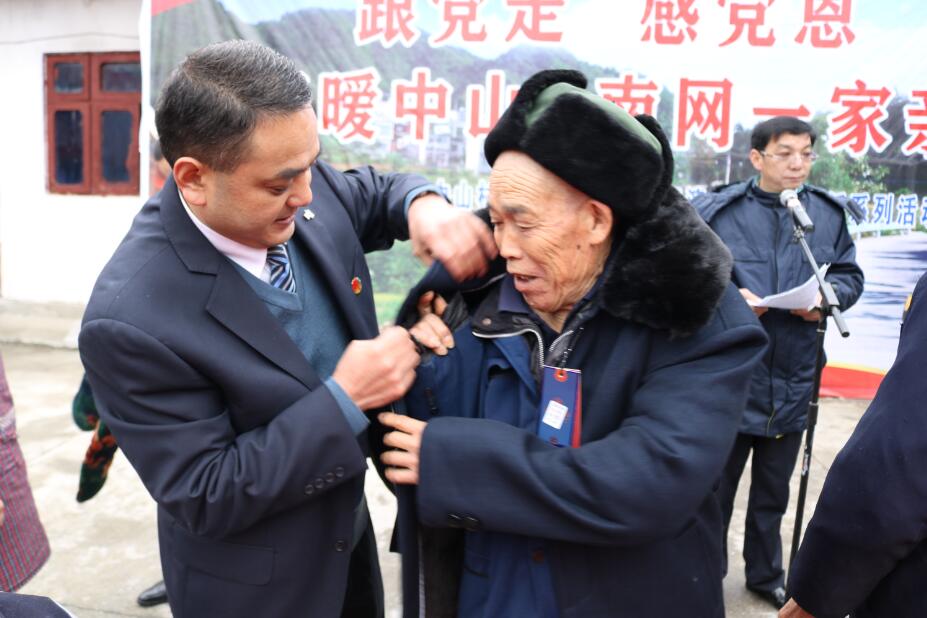 為了讓村里老人們溫暖過冬,該局全體干部員工自掏腰包,購置了28件棉衣,并為老人們穿上。“這陣子很冷,供電局給我買棉衣,我的身也暖、心也更暖了,真心謝謝他們!”84歲的老人譚嗣德一邊穿著新棉襖,表達(dá)著歡喜和感動。