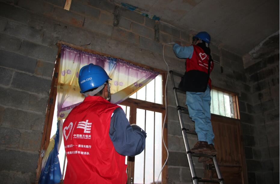 12月18日,畢節納雍供電局組織青年志愿者為沙包鎮秀才壩村八組貧困戶楊維學安裝危房改造新居室內供電線路,確保楊維學一家春節返鄉過節。
