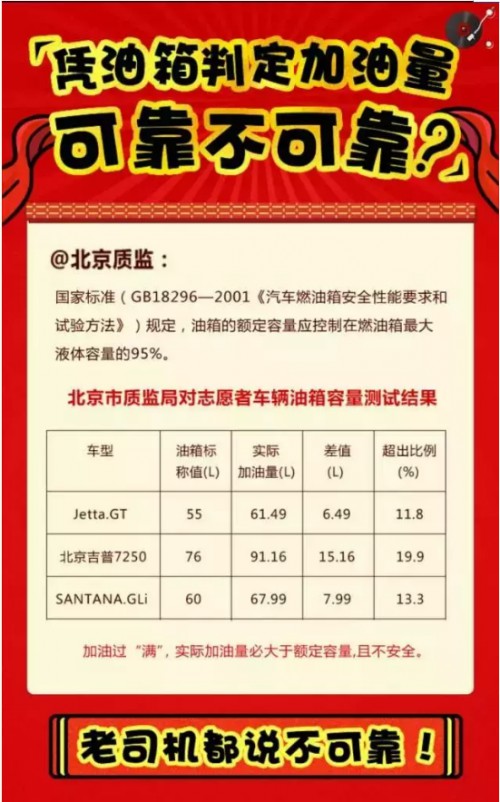 例如,一些車主為了加油金額湊整,讓加油員在“加滿”后再多加一點,所以這個“加滿”程度是有差異的。
