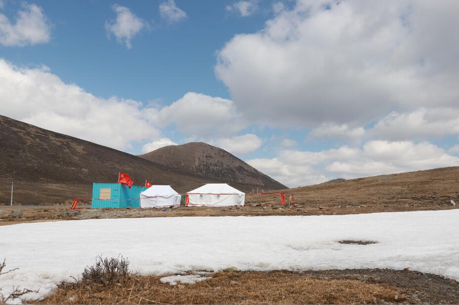 從124號(hào)塔的施工場(chǎng)地向西邊望去,不遠(yuǎn)的地方有幾頂白帳篷,那是這支隊(duì)伍的臨時(shí)駐地。為了能夠節(jié)約每天在路上耽誤的時(shí)間,他們選擇將施工駐地搭建在了離124號(hào)塔不遠(yuǎn)的地方,這里海拔和124號(hào)塔海拔相差無(wú)幾,高達(dá)4600米,帳篷周邊還有一大片一大片還沒(méi)來(lái)得及融化的積雪,帳篷里隨處可見(jiàn)高原應(yīng)急藥品和氧氣瓶,以應(yīng)對(duì)施工人員隨時(shí)可能出現(xiàn)的高原反應(yīng)。