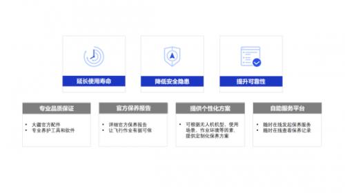 繼2019年發布的行業無憂續享及行業無憂定制服務,今年大疆行業應用在Airworks 2020 大會又推出了無人機保養服務:覆蓋無人機全生命周期,包含三種保養計劃:基礎保養、常規保養、深度保養。行業客戶可根據無人機的使用和飛行時間選擇相對應的保養服務,讓無人機始終處于最佳狀態,從而保障作業安全,提升作業效率。可在線查看的官方保養記錄,讓行業客戶更好地掌握無人機狀態,無懼各類飛行作業。