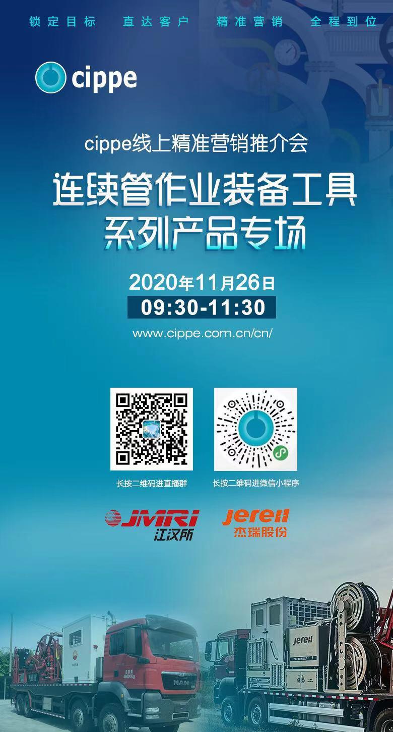 搶抓機(jī)遇 乘勢(shì)而為!cippe線上精準(zhǔn)營(yíng)銷推介會(huì)第三場(chǎng)直播活動(dòng)——連續(xù)管作業(yè)裝備工具系列產(chǎn)品將于11月26日上午09:30-11:30正式開(kāi)播。本次推介會(huì)吸引了中石油江漢機(jī)械研究所有限公司、煙臺(tái)杰瑞石油服務(wù)集團(tuán)股份有限公司參與其中。將通過(guò)對(duì)連續(xù)管作業(yè)裝備工具的優(yōu)勢(shì)與應(yīng)用的介紹,輔以實(shí)用案例的分享,致力于讓收看直播的觀眾能第一時(shí)間深入了解產(chǎn)品特點(diǎn),激發(fā)潛在專業(yè)買家對(duì)產(chǎn)品的興趣,奠定相互合作信任的堅(jiān)實(shí)基礎(chǔ)。活動(dòng)將采用無(wú)人機(jī)航拍、多機(jī)位、多角度等多種高清直播相結(jié)合的形式進(jìn)行產(chǎn)品、技術(shù)推介,為供需雙方搭建更透明、更便捷的貿(mào)易對(duì)接渠道,進(jìn)一步推動(dòng)企業(yè)間的交流合作。