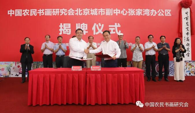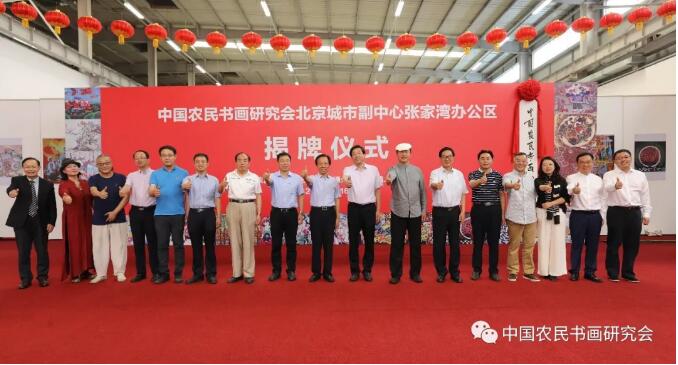 7月16日,“中國農民書畫研究會北京城市副中心辦公區”落戶北京市通州區張家灣“創意設計小鎮”。原文化部副部長、中國藝術研究院原院長王文章,中國農民書畫研究會終身名譽會長、原農業部辦公廳主任、新聞發言人徐靜,中國農民書畫研究會會長畢銘鑫,通州區委宣傳部常務副部長陳立軍、通州區文聯副主席王桂新,通州區張家灣鎮黨委書記聶玉泉,通州區張家灣鎮黨委副書記、鎮長范亮亮 , 通州區張家灣鎮黨委副書記張碩,通州區張家灣鎮黨委宣傳部長陳瑞昆等領導出席了揭牌儀式。