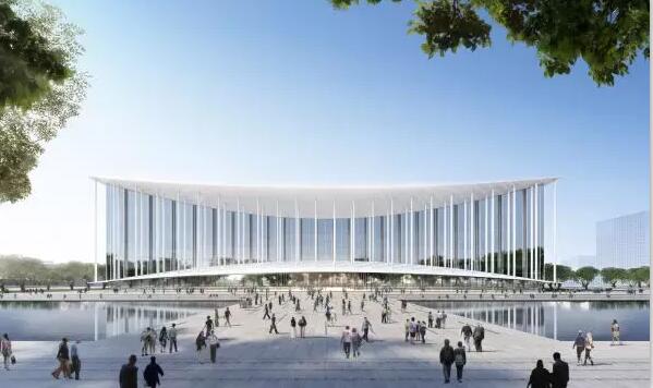 西安絲路國際會議中心位于西安浐灞生態區灞河之濱,總建筑面積20萬平方米,外輪廓呈正方形,是一座集生態化、國際化、智能化為一體的會議中心。會議中心以簡明抽象的手筆,傳承了中國古典建筑特征,創造出現代而經典,大氣而精致,莊重而優雅的標志形象。圖為西安絲路國際會議中心效果圖。(中建深圳裝飾有限公司 供圖)