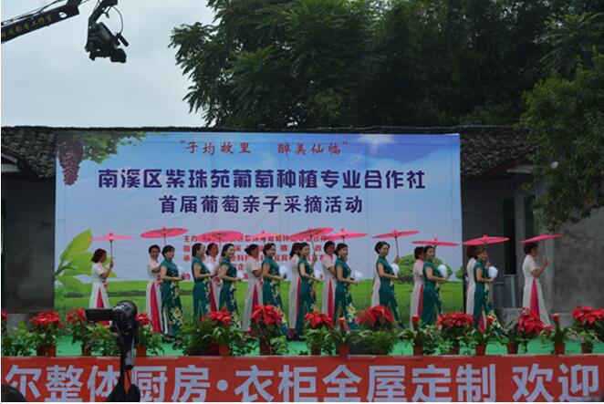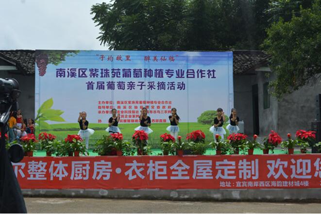本網訊(王大崗)7月20日,雨過天晴,南溪區仙臨鎮紫珠苑葡萄種植基地彩旗飛舞熱鬧非凡,紫珠苑農莊首屆葡萄采摘活動成功開園。