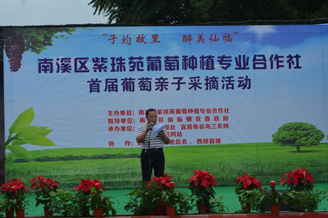 南溪區仙臨鎮紫珠苑葡萄種植專業合作社法人代表李洪軍表示,紫珠苑葡萄種植專業合作社響應中央號召,積極投身鄉村振興,在仙臨鎮黨委、政府的正確領導下,在村社領導的鼎力支持下,按照集旅游觀光、產業發展相結合的思路,采用“無公害”生產技術種植葡萄、無花果、黃桃、梨、水蜜桃等品種,目前正是巨峰、夏黑、無核青提等葡萄成熟采摘的季節,所以舉辦開園儀式,讓廣大市民朋友前來體驗采摘,留住鄉愁記憶,感受農業豐收的喜悅,分享鄉村振興的成果。