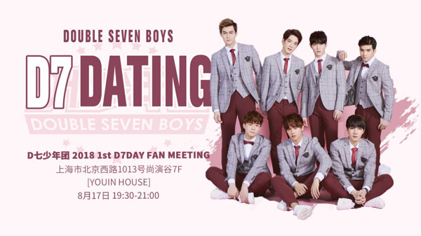 作為實力與人氣兼具的新生代偶像組合,D七少年團首場粉絲見面會將于8月17日在上海舉辦。農歷七月初七的日子因為與Double Seven Boys雙七概念的呼應,而被賦予了“D7DAY”的全新含義,將成為D七少年們與粉絲們的甜蜜紀念日。當天TEAM D成員將與粉絲們面對面親密互動,帶來豐富精彩的現場演出。組合第二支隊伍TEAM S及全新專輯、首場演唱會也都在積極籌備當中,敬請期待!